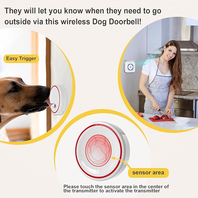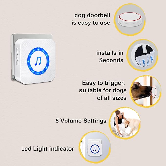 EGYSZERŰ KÉPZÉS: Vezeték nélküli kutyaajtócsengőnk könnyen felszerelhető és használható, bármilyen méretű háziállat számára alkalmas, és a tökéletes megoldás a biliedzési problémákra.