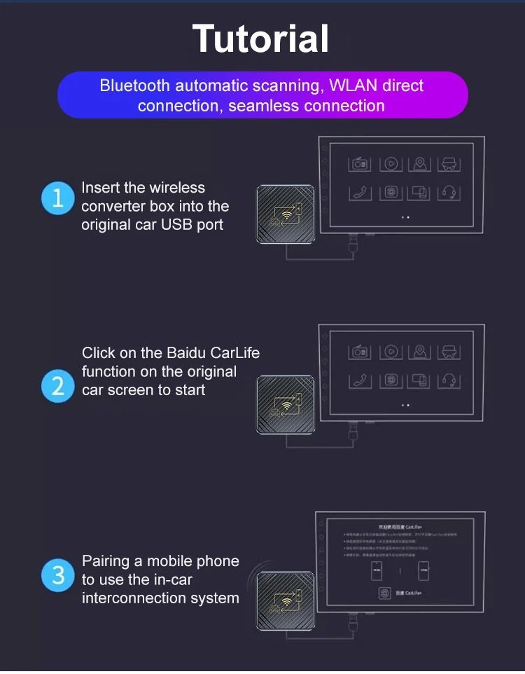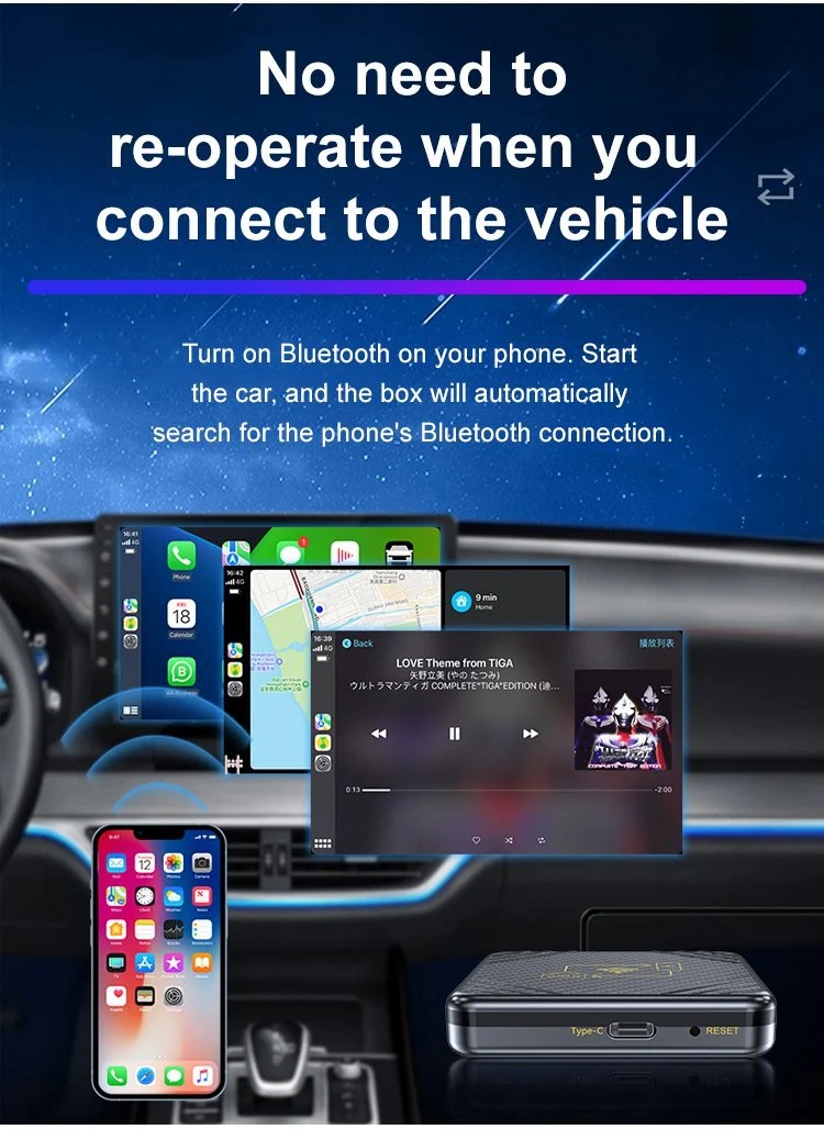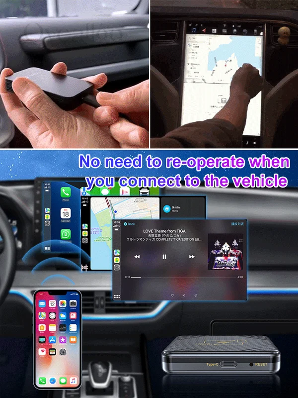 ①Zapojte box bezdrôtového adaptéra do USB v aute